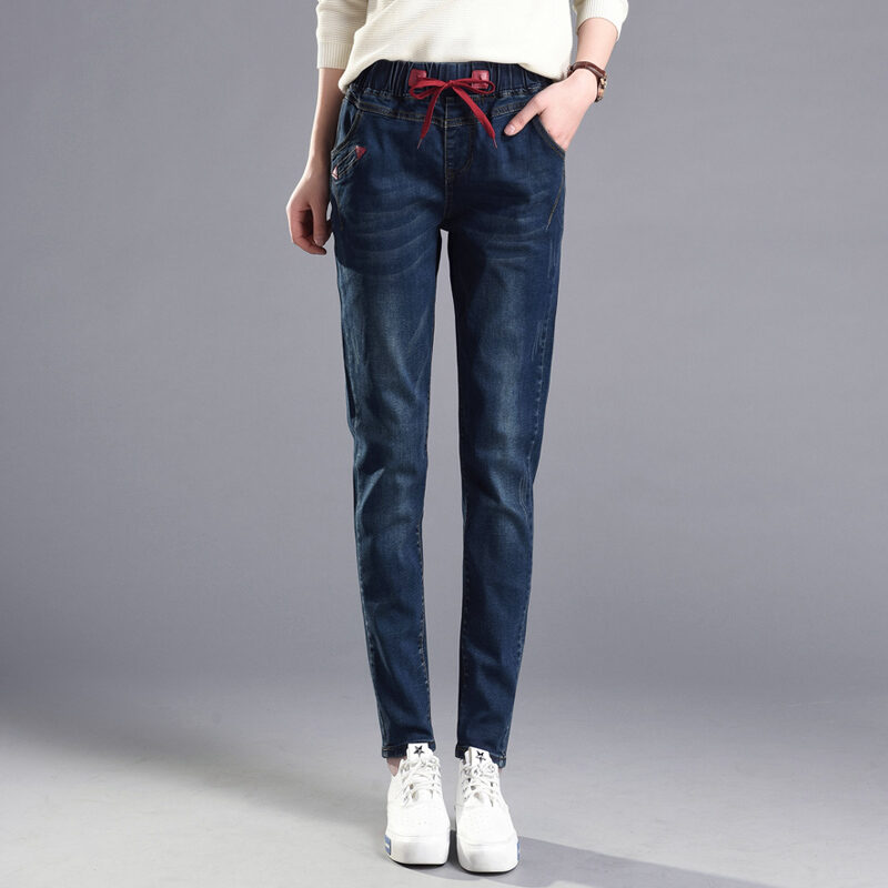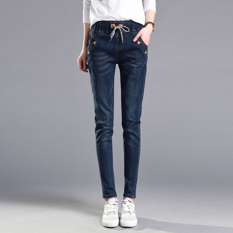 Elastic Waist High Waist Jeans Women's Spring and Autumn Korean Style Skinny Pants Loose Slimming Pants 2021 New Harlan Trousers